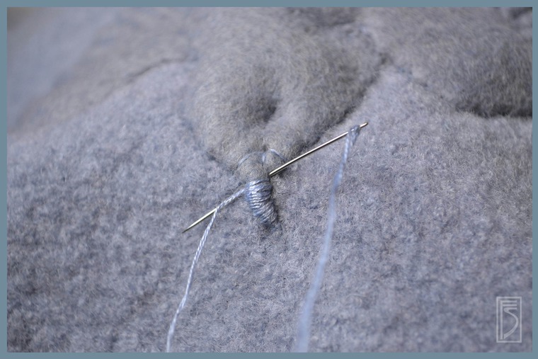 Можно по местам углублений пройти иглой для валяния, либо просто, прокладывая швы в этих местах зацепляться за ткань жакета: