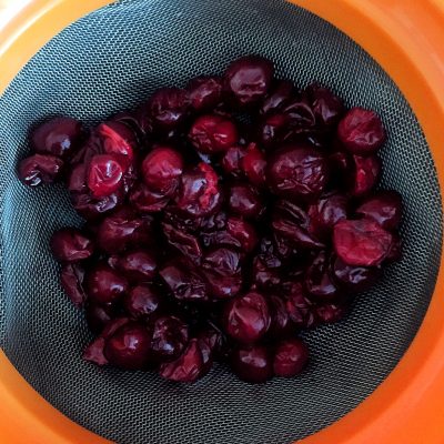 Вишню заранее достаем из морозилки, чтобы разморозить.